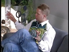 BLONDE SUCKS A MASSIVE COCK THEN RIDES IT HARD ON THE SOFA